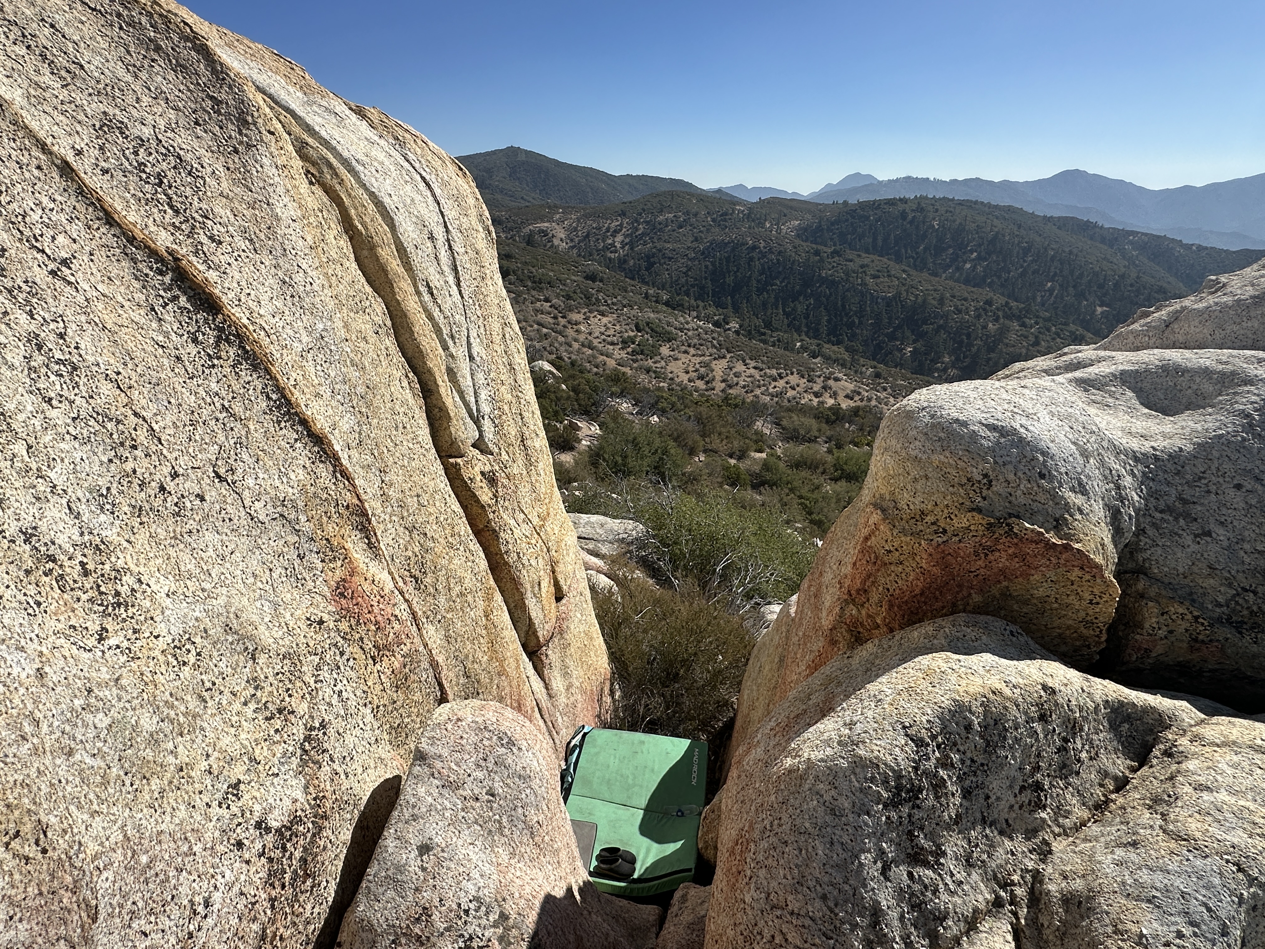 Climb just the left crack. Right crack is OFF. Harder start than the right crack, and a much harder finish.