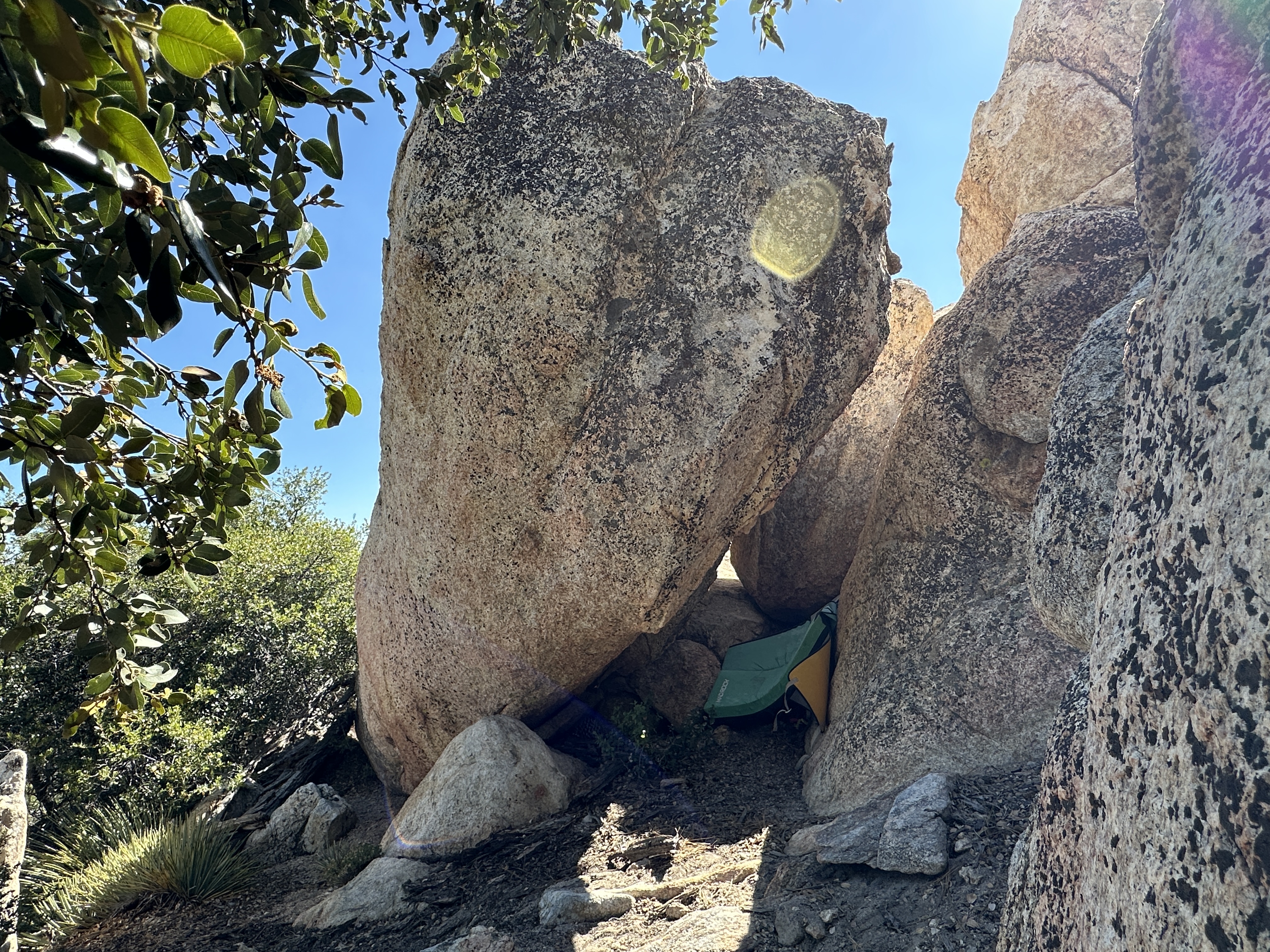 First good cluster of rocks if you are hiking in from the campground.