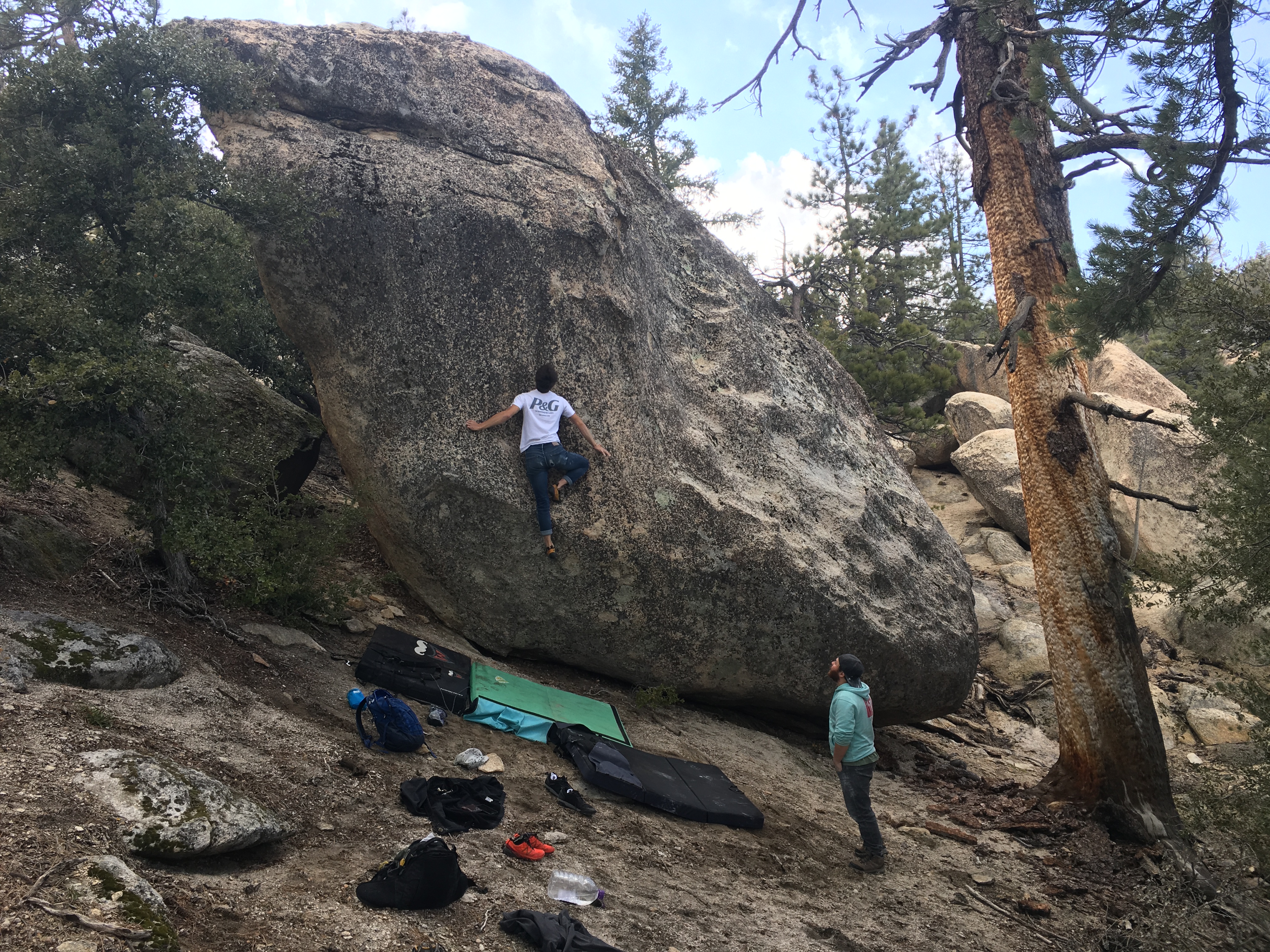 Tall Boulder with some cool problems on it. Currently has a big tree blocking the namesake problem.