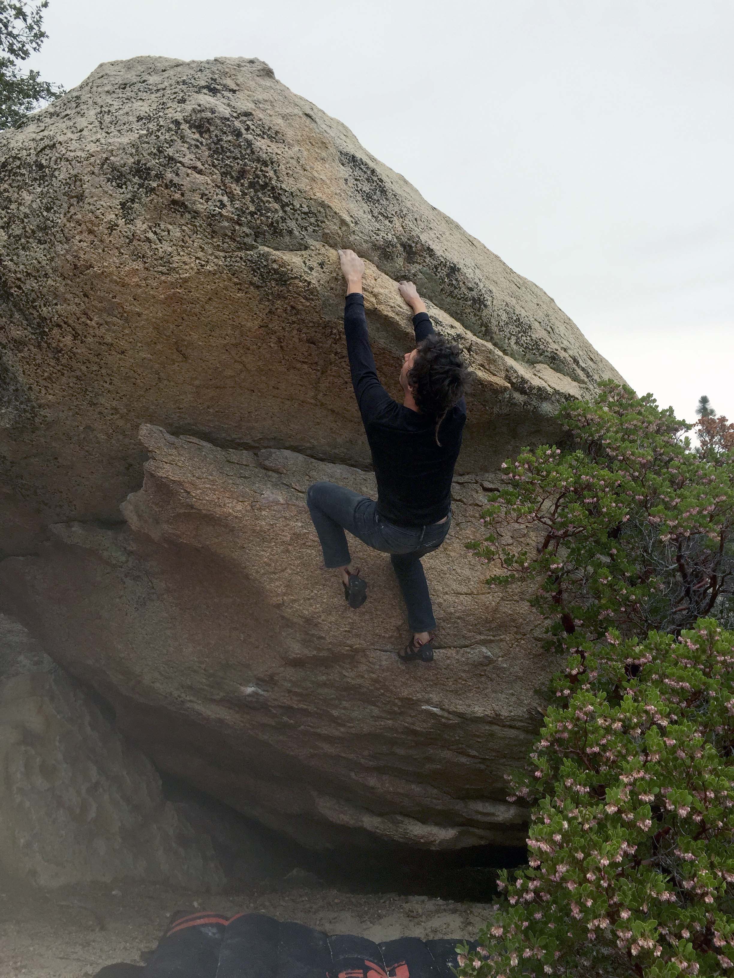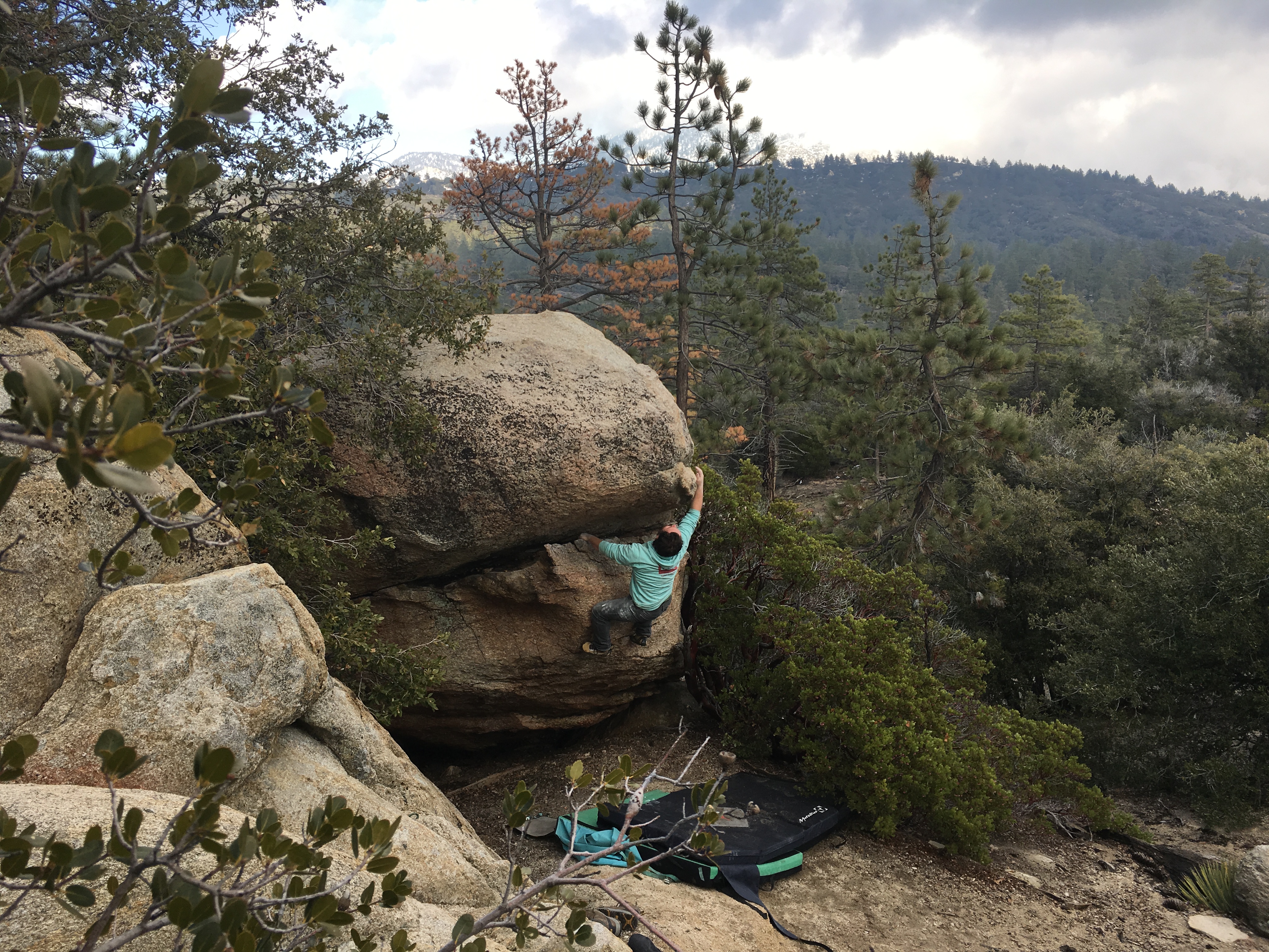 If you are walking from the campground towards the main area this will be the first overhung boulder on the right. Called "A Boulder" in the 5 Star book. Called "5.10a roof" in the Craig Fry book.