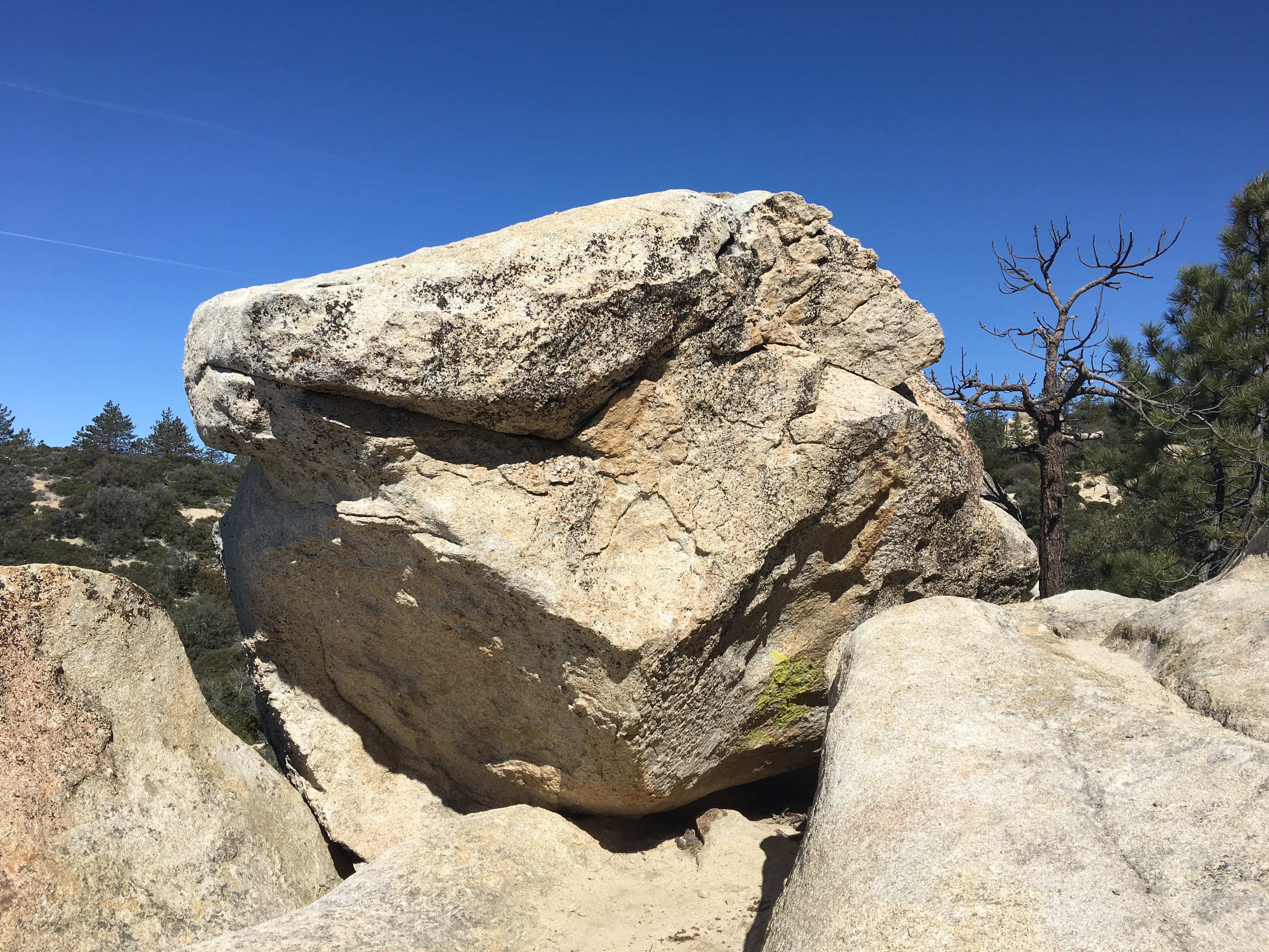 Surprising amount of problems on this boulder. The south west side of the boulder bakes in the sun. You can't easily walk around this boulder. It's just above/adjacent to the Barndoor Boulder.