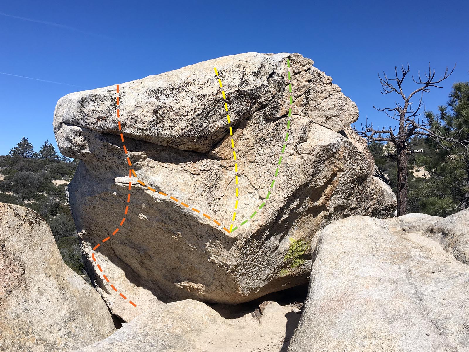 This problem is on the south east side of the boulder, starting in a shallow v-shaped crevice. From the 1999 James March Rock & Ice guide, "Sit start. Roof has many variations," this is one of them. With a squished down single pad layer you can start this from a funky/awkward full sit start with the right technique. I think most people start one move above that though.