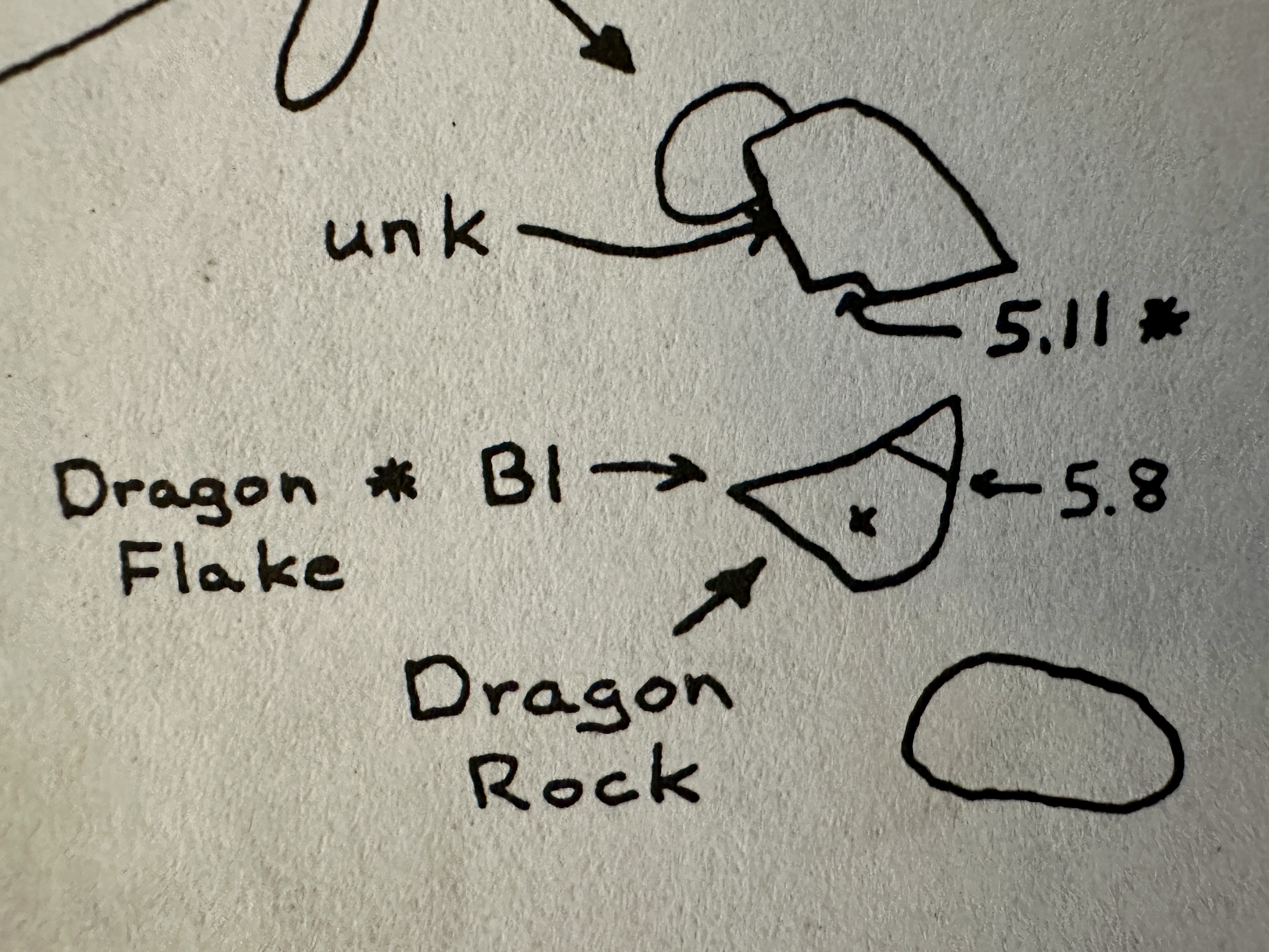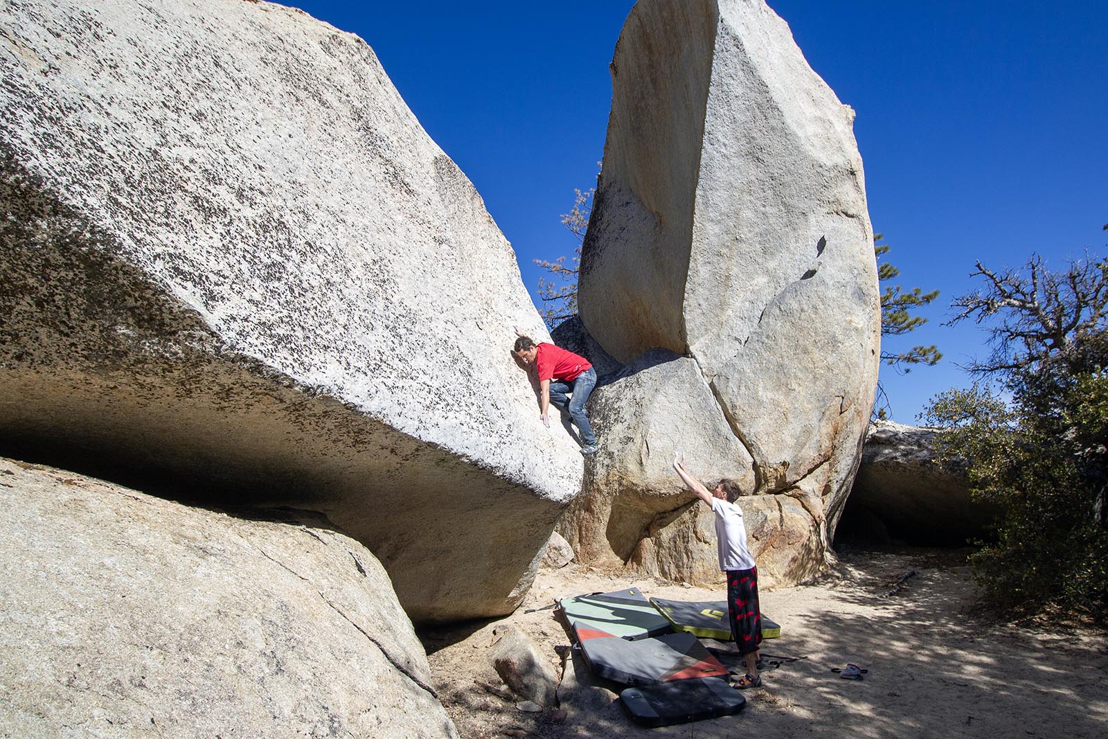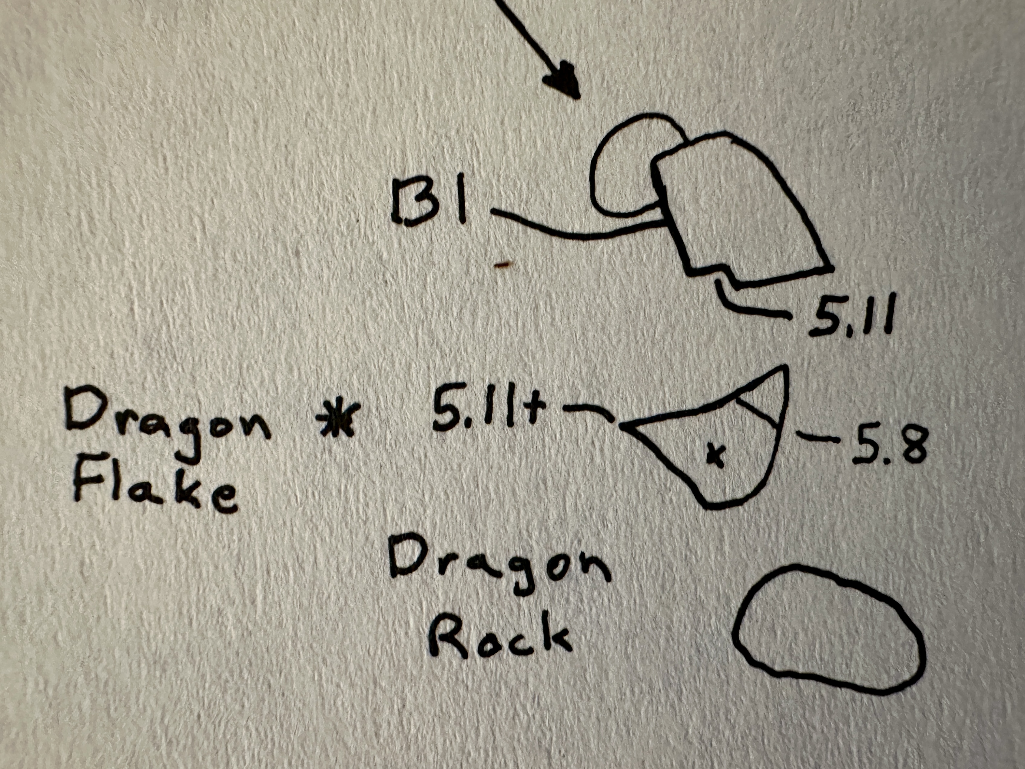 This boulder confuses me. Or it used to. In the 1990 Craig Fry guide there is a B1 (around V4+) on the left and a 5.11 (V3/4) to the right. In the 1995 "Second Edition" it says "unk" instead of B1 and 5.11* on the right. James March's 1999 Rock & Ice guide says, "Satellite Dish (V5/V6) Mantel into dish; climb face (right crack off)," and the problem to the right of that as Untitled V2.