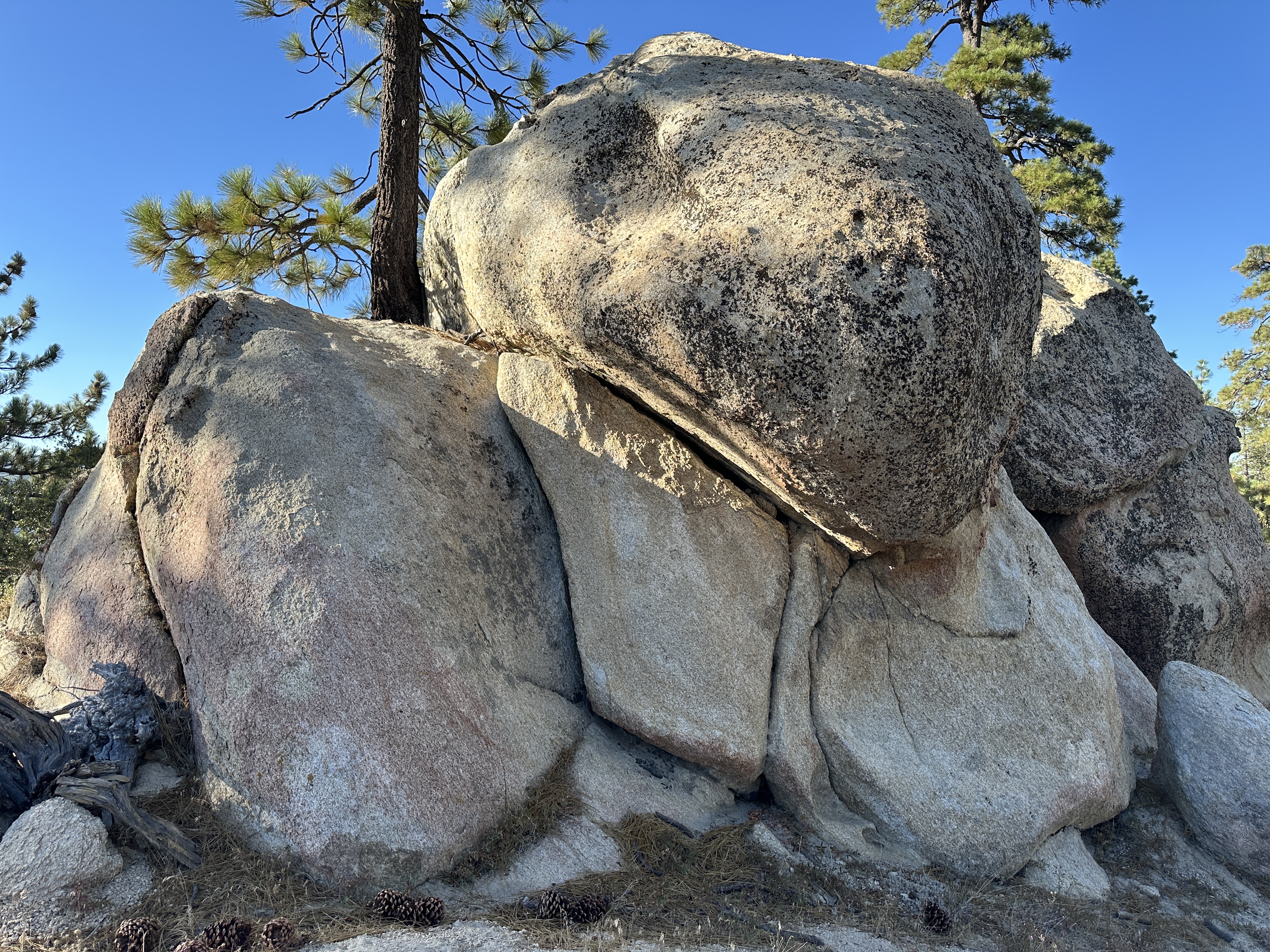 Sit start and climb into the crack. Make some moves to the sloping rail around the roof. Top out.