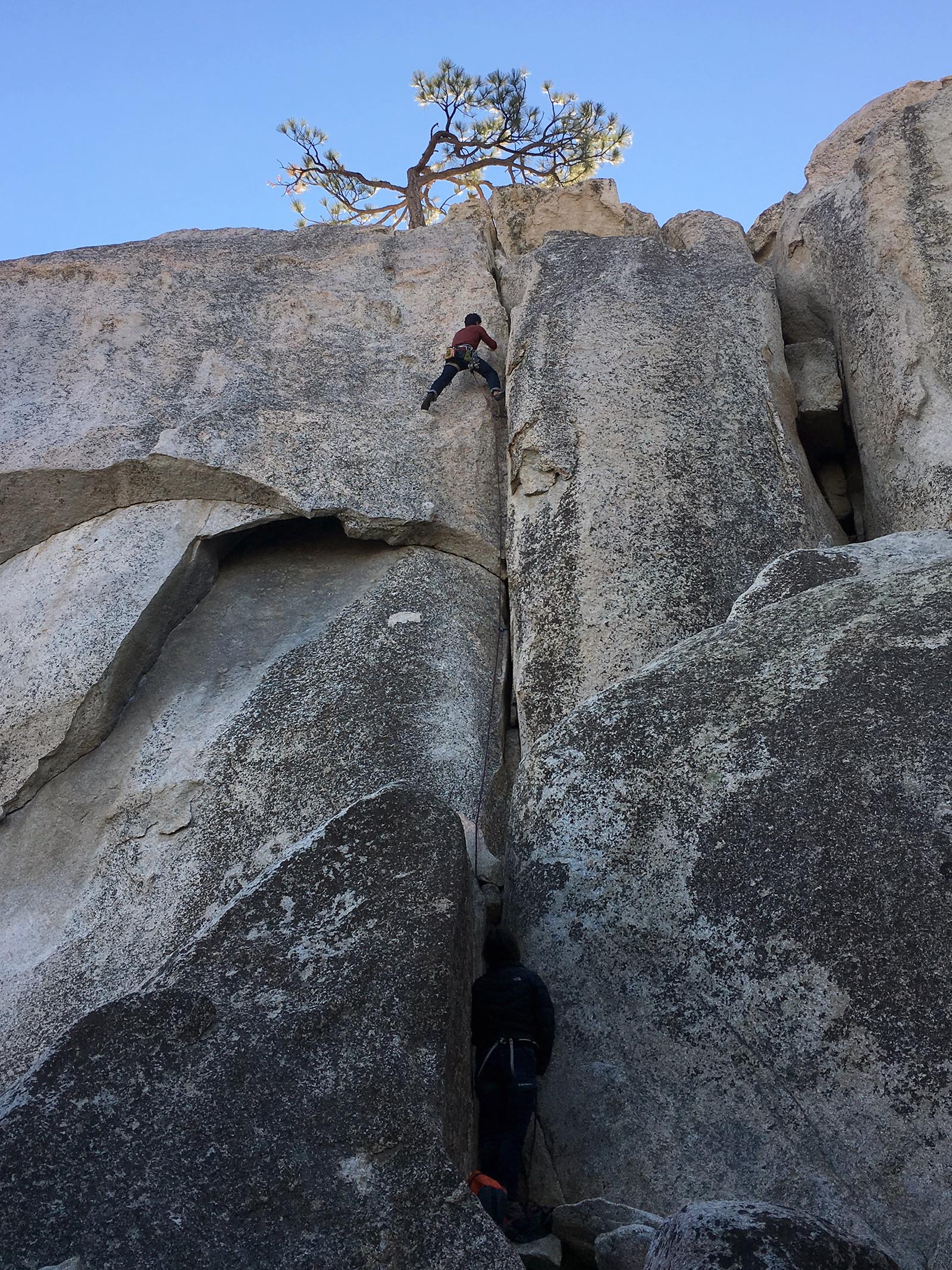 5.8 crack that often has ants in it. Trick move at the start and then it eases up. Use the tree as a anchor. You can get to the tree up top and easily TR this route.