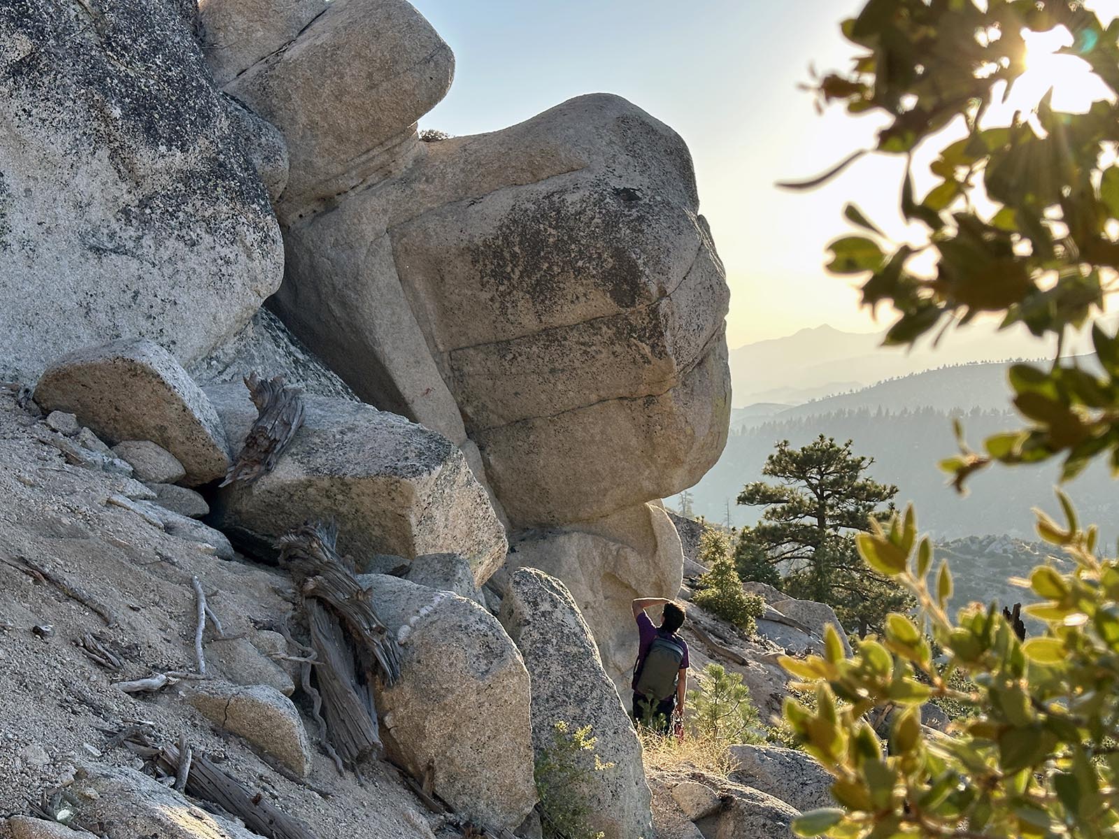 Park at any of the turnouts after Camp Valcrest but before the 6,000 foot gate (along the longest straight section of the Angeles Crest). Walk towards the PCT (south east) and walk up any of the spines or gullies towards the small towers and boulder piles. I have not found a best way up here. It can be quite steep and loose.