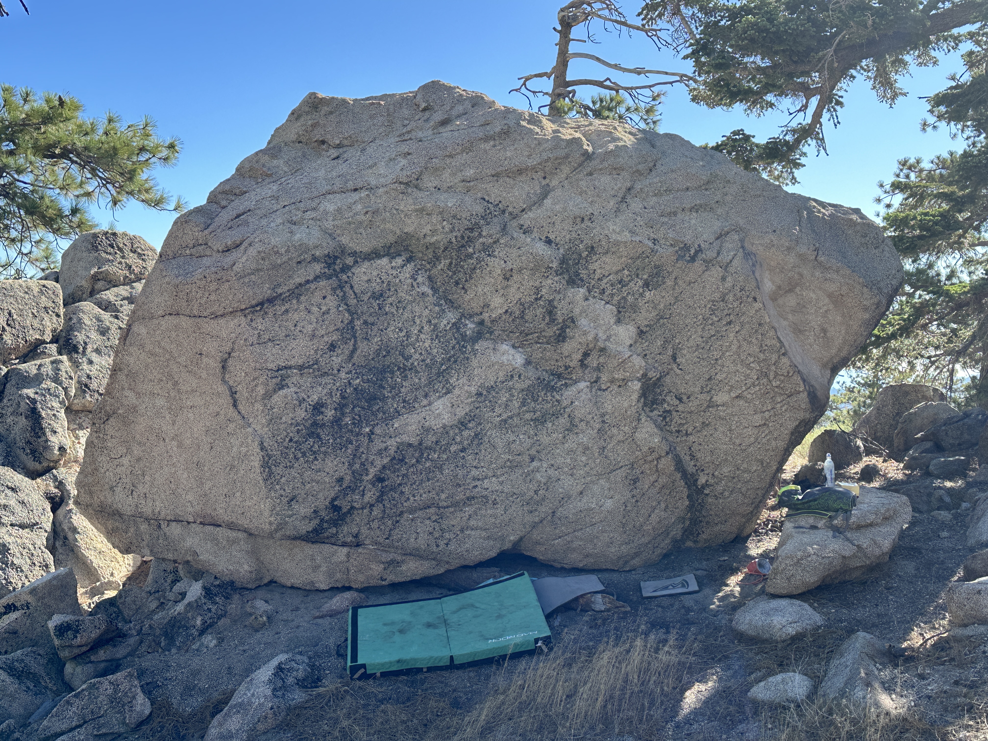 Sit start and traverse up and left. Use some loose jugs and the some sloper jugs to climb up and left.