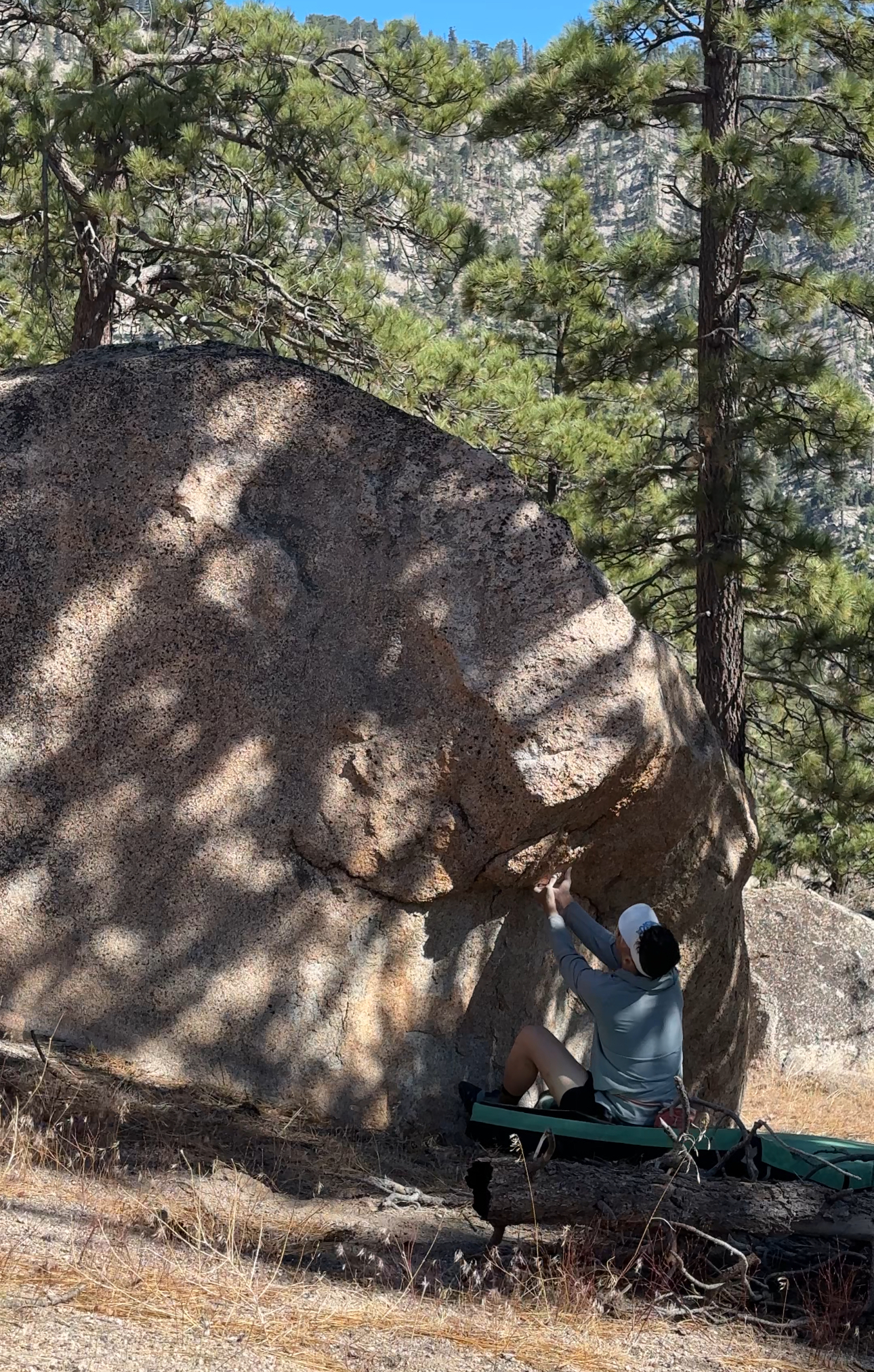 Sit start hands matched on a very small undercling. There is more undercling to the left but it is choss so I don't touch it. Use compression to climb the arete.