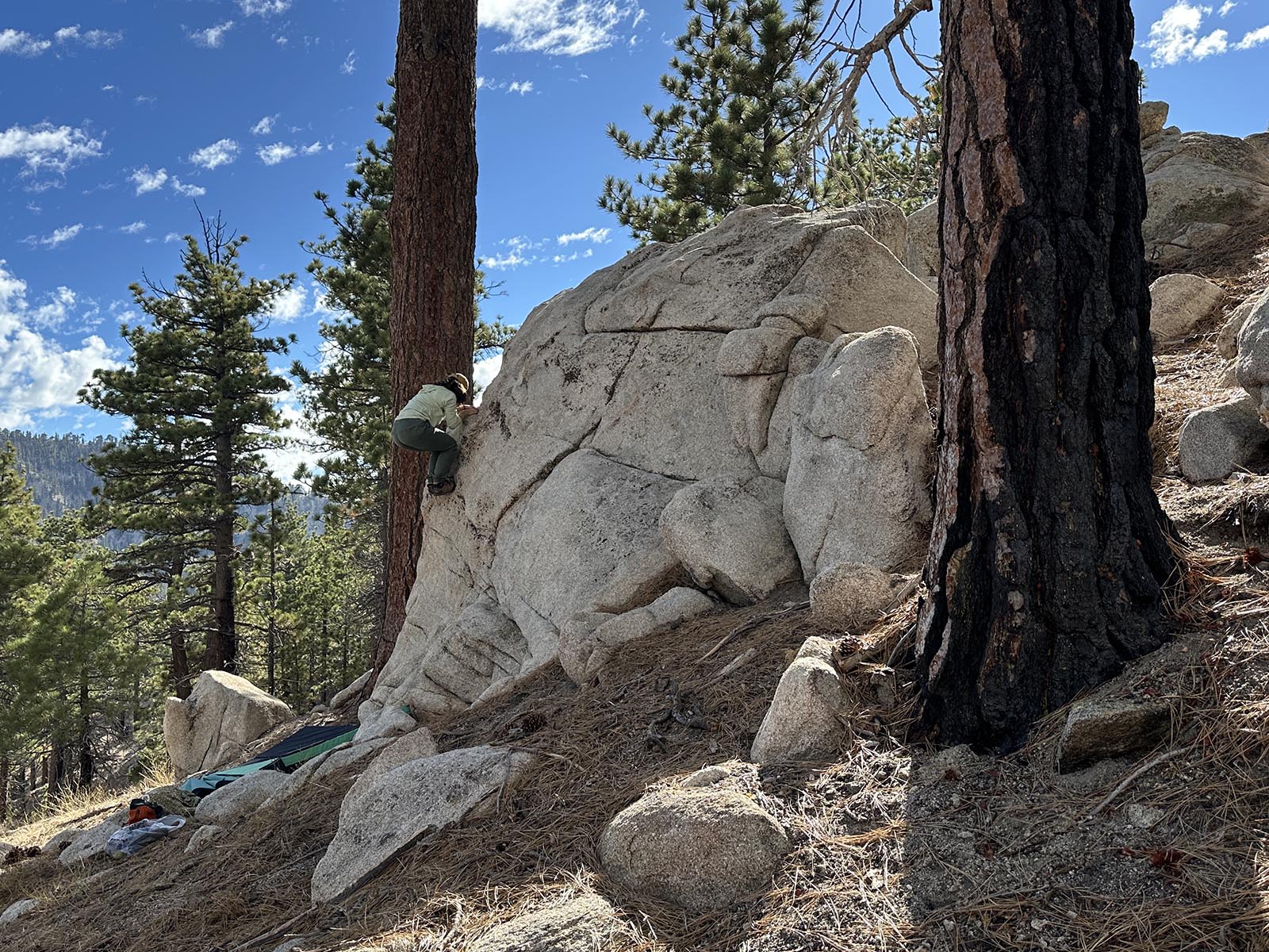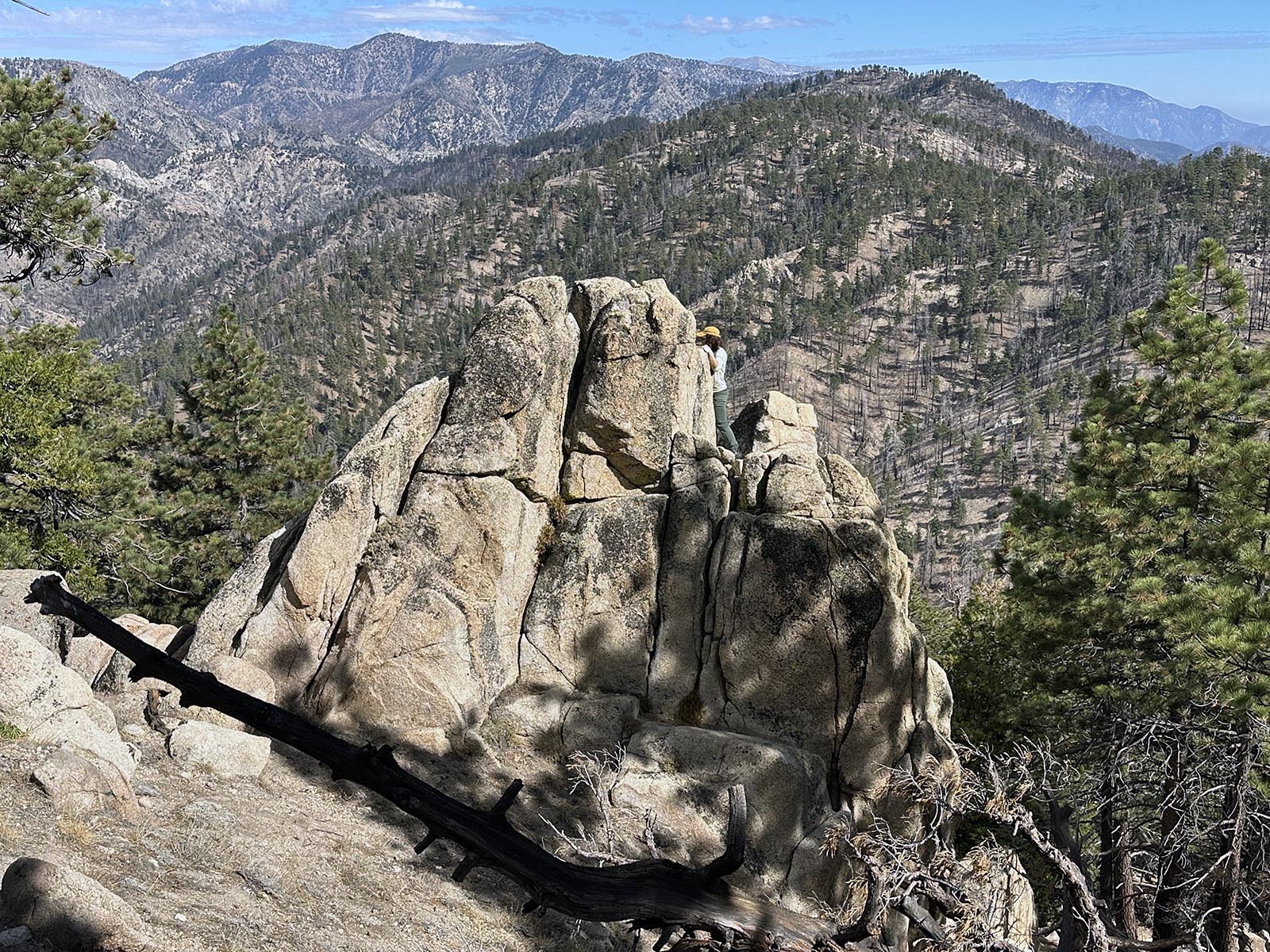 Best way to get here is to walk down the road and look for an unused overgrown road to your left. Don't miss the overgrown road! Take the overgrown road out the North East side of Winston Peak. The road makes one switchback and goes towards the boulders. If you don't take the switch back you'll find another overgrown road and reach a saddle.