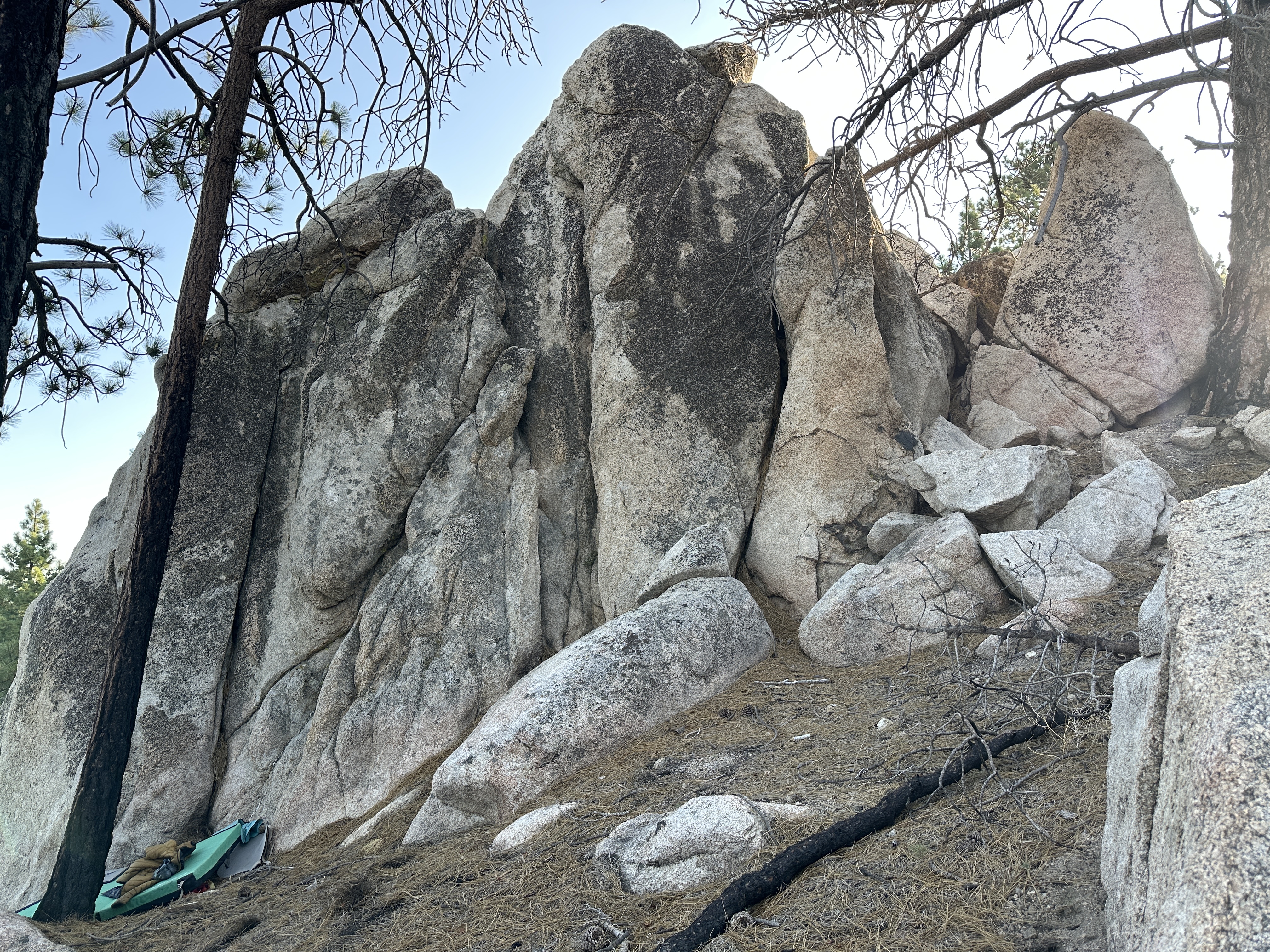 About .34 miles from the trailhead on the left. Tall boulders on the left of the trail.