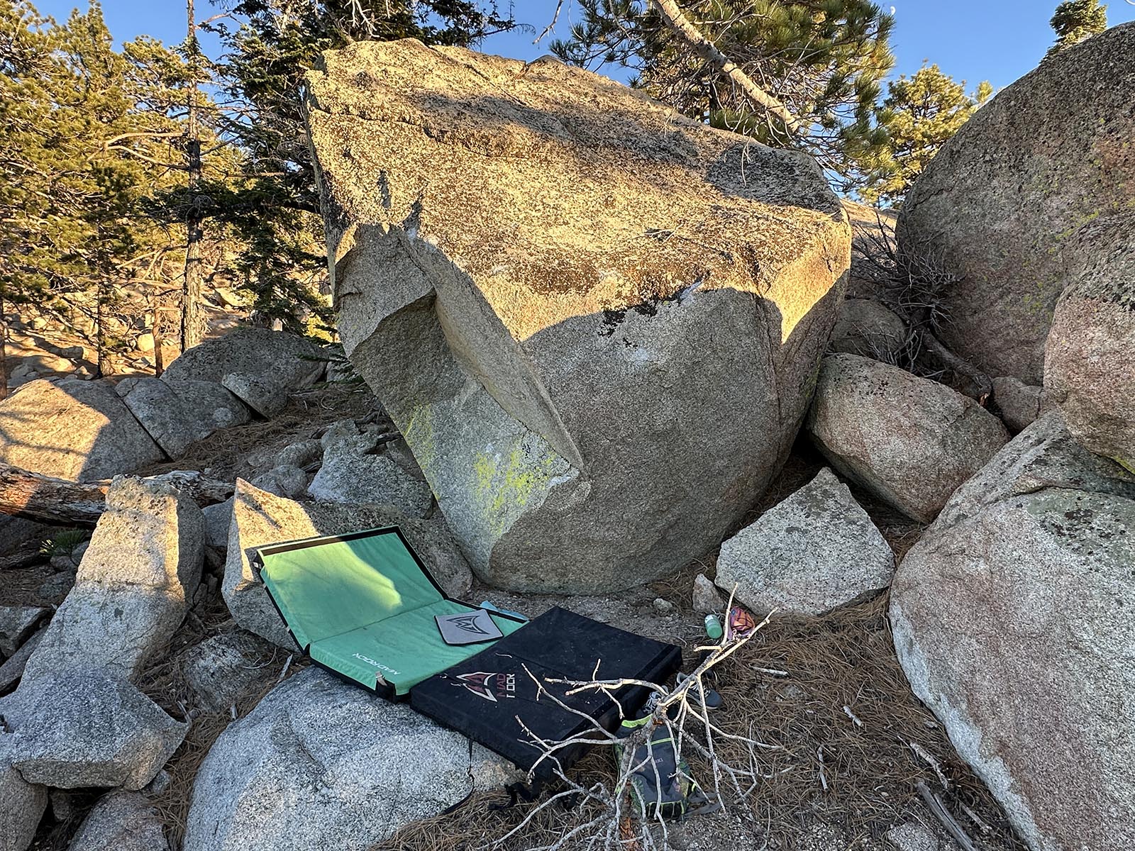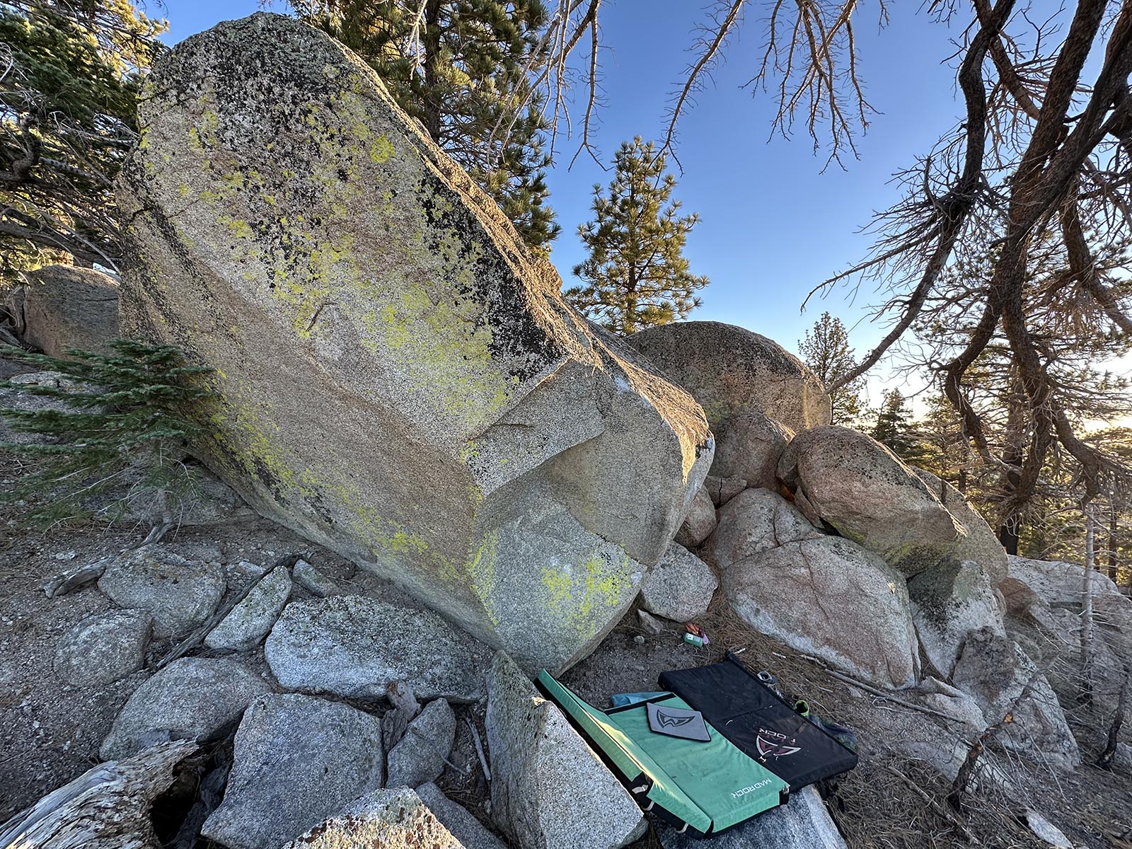 This boulder is in a litle nook by itself overlooking to the Northwest. It's close to the flat area. And it's above the Unnamed and Poodle-dog Boulders.