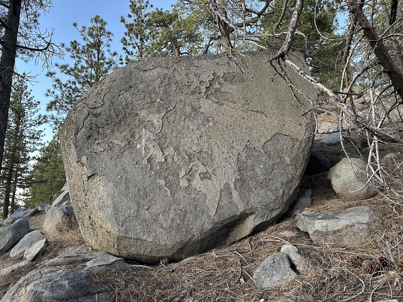 I initially thought this face had two seperate problems. One left and one center. But I found a conversation I had with Lance Carrera in 2022 where he mentioned climbing this in one problem. There's also at least one slab problem on the back.