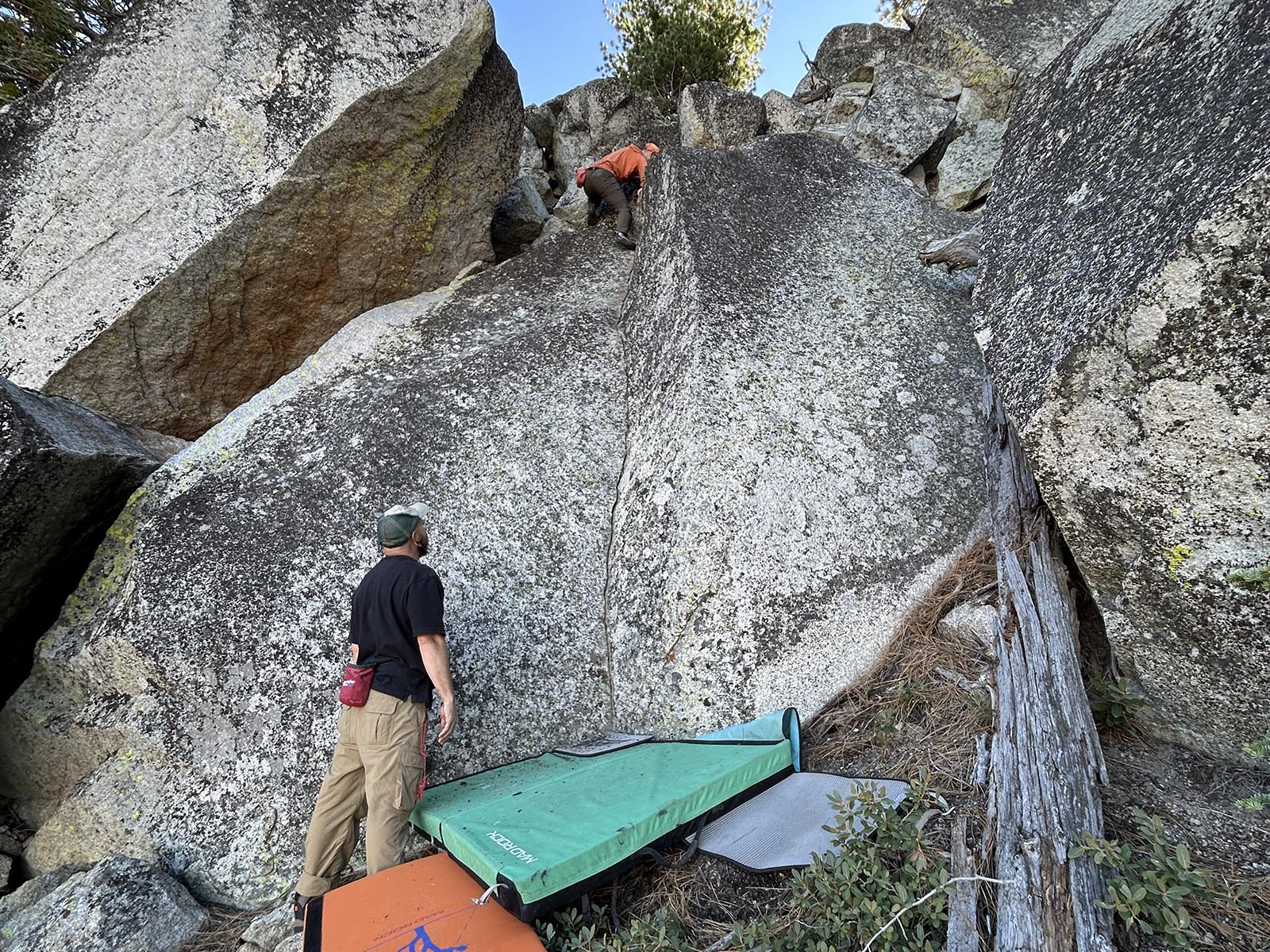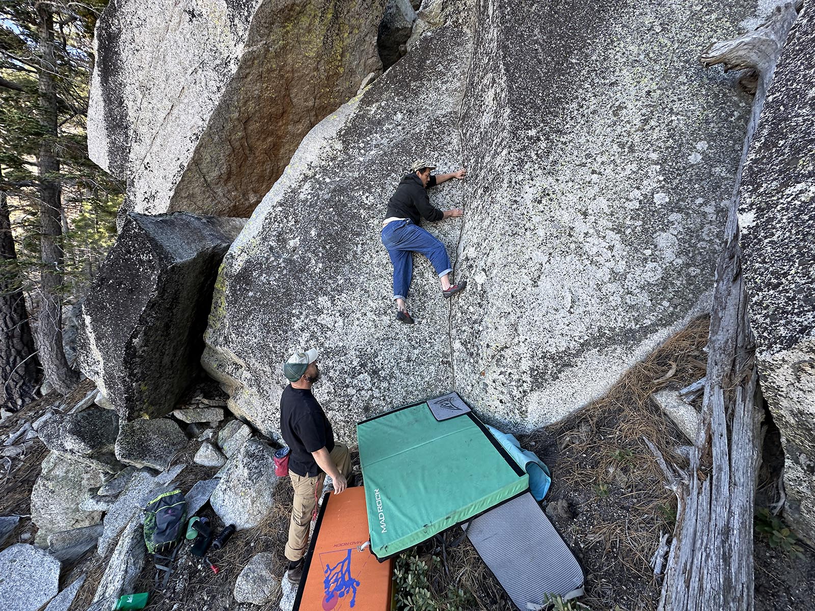 Nice dihedral lieback slab problem. Not the best landing, bring a spotter.